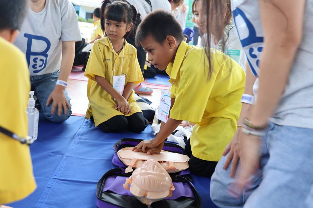 โดยสอนวิธีการแปรงฟันอย่างถูกวิธี รวมถึงสอนการทำ CPR (Cardiopulmonary Resuscitation) ซึ่งคุณครูและนักเรียนได้เรียนรู้และลองปฏิบัติจริงเพื่อเสริมสร้างความรู้และสามารถนำไปใช้ปฐมพยาบาลช่วยเหลือผู้ป่วยเบื้องต้นได้อย่างถูกวิธี รวมทั้งมีเกมต่างๆ ให้น้องๆ ได้ร่วมสนุกกันอีกด้วย และนอกจากได้ร่วมทำกิจกรรมต่างๆ ข้างต้นแล้ว คณะผู้บริหารยังได้มอบเครื่องกรองน้ำและตู้กดน้ำดื่ม ชุดยาสามัญและเวชภัณฑ์ อุปกรณ์คอมพิวเตอร์ และอุปกรณ์กีฬา รวมการสนับสนุนทั้งสิ้นมีมูลค่ากว่า 480,000 บาท