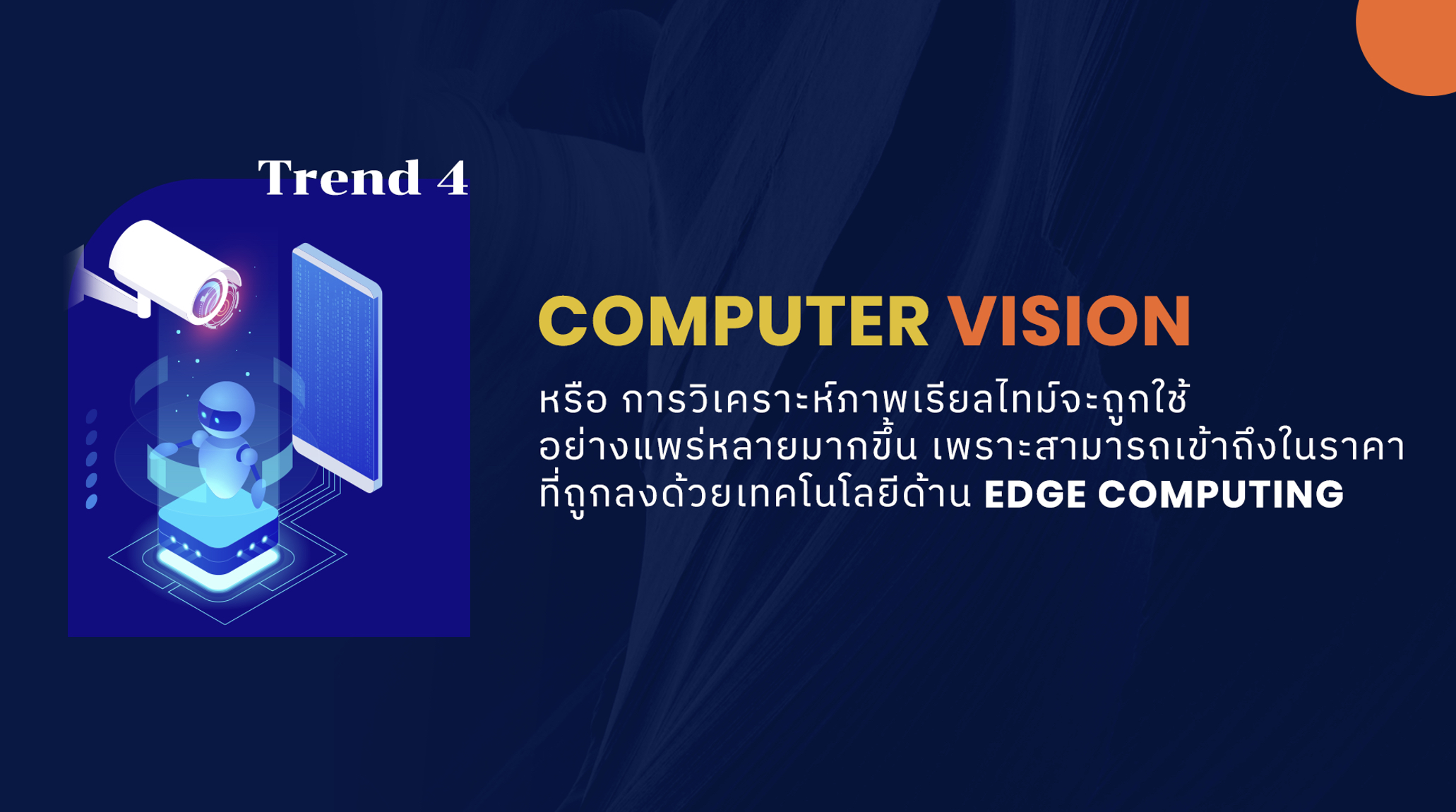 การวิเคราะห์ภาพเรียลไทม์จะถูกใช้อย่างแพร่หลายมากขึ้น เพราะสามารถเข้าถึงในราคาที่ถูกลงด้วยเทคโนโลยีด้าน Edge Computing การวิเคราะห์ภาพจากกล้องวงจรปิดเช่นเดียวกับที่เห็นในภาพยนตร์ สามารถจับภาพผู้บุกรุก หรือจำแนกคนแปลกปลอมภายในบริษัท