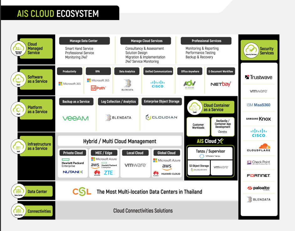 รวมถึงการทำงานร่วมกับ VMware ในการเป็นพาร์ทเนอร์ผู้ให้บริการ Sovereign Cloud รายแรกในเอเชียตะวันออกเฉียงใต้ ซึ่งจะช่วยเพิ่มความมั่นใจเรื่องมาตรฐานความปลอดภัยสูงสุด ช่วยลดต้นทุนและความซับซ้อนในการออกแบบระบบเหมาะสำหรับธุรกิจที่ต้องการเก็บข้อมูลในประเทศ หรือมีการกำกับดูแลจากหน่วยงานเฉพาะ
