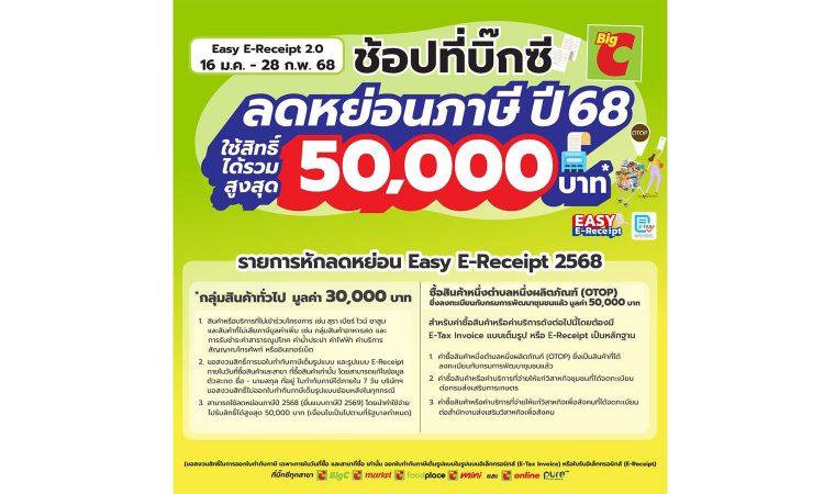 “บิ๊กซี ซูเปอร์เซ็นเตอร์ ขานรับโครงการ Easy E-Receipt ลดหย่อนภาษี สูงสุด 50,000 บาท อัดแคมเปญเสริม ช้อปทุกแผนก รับเพิ่มส่วนลด รวมสูงสุดถึง 6,000 บาท