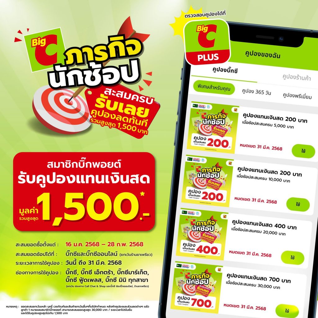 ขณะเดียวกัน บิ๊กซี ยังนำเสนอแคมเปญพิเศษเฉพาะสมาชิกบิ๊กพอยต์ ช้อปทุกแผนก รับเพิ่มส่วนลด รวมสูงสุด 6,000 บาท เพื่อมอบความคุ้มค่าให้แก่ลูกค้ามากยิ่งขึ้น แบ่งเป็น “ภารกิจนักช้อป” รับคูปองแทนเงินสด มูลค่ารวมสูงสุด 1,500 บาท เมื่อซื้อสินค้าสะสมทุกแผนก ครบ 30,000 บาท ตามเงื่อนไขที่กำหนด ซึ่งลูกค้าสามารถใช้คูปองแทนเงินสดดังกล่าวได้จนถึงวันที่ 31 มีนาคม 2568 นอกจากนี้ ยังมี สินค้ากลุ่มเครื่องใช้ไฟฟ้า ลดทันทีสูงสุด 4,500 บาท เมื่อซื้อสินค้าที่ร่วมรายการ ครบ 30,000 บาท ตั้งแต่วันที่ 16 มกราคม 2568 – 28 กุมภาพันธ์ 2568