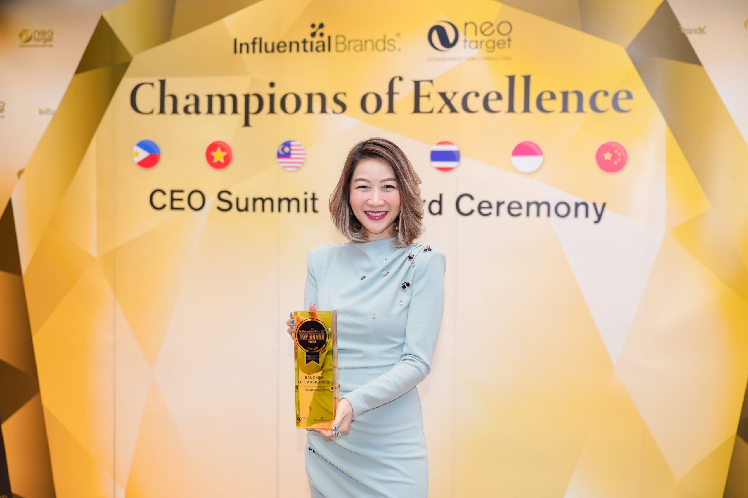 บริษัท กรุงเทพประกันชีวิต จำกัด (มหาชน) โดย อรนาฎ นชะพงษ์ ผู้บริหารสายงานกลยุทธ์การตลาดและบริหารจัดการลูกค้า รับมอบรางวัล Top Influential Brand Award 2024 สาขา Life Insurance จากงาน 2024 Asia CEO Summit & Award Ceremony ตอกย้ำถึงการเป็นสุดยอดแบรนด์ประกันชีวิตที่ครองใจผู้บริโภค ด้วยแนวทางการดำเนินงานที่เข้าใจ ใส่ใจ และตอบโจทย์ความต้องการของลูกค้าได้อย่างแท้จริง