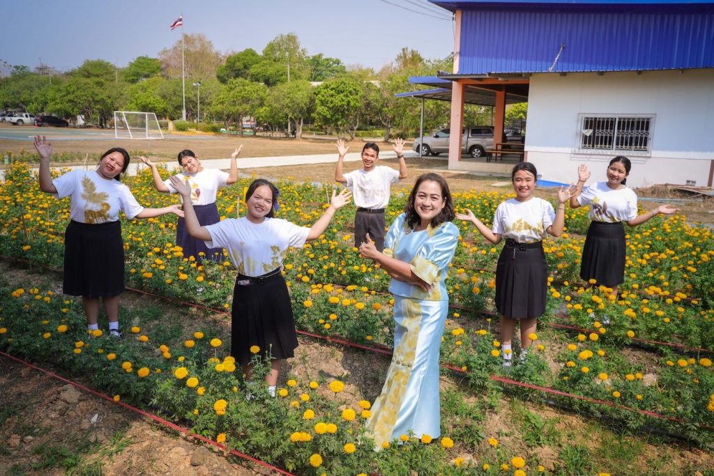 “ซีพี ออลล์ สร้างทักษะ ผู้ประกอบการจิ๋ว ต่อเนื่อง รร.วังไพรวิทยาคม จ.สระแก้ว สร้างสรรค์ภูมิปัญญาผลิต ผ้ามัดย้อมจากดอกดาวเรือง ฝีมือ ครู-นักเรียน