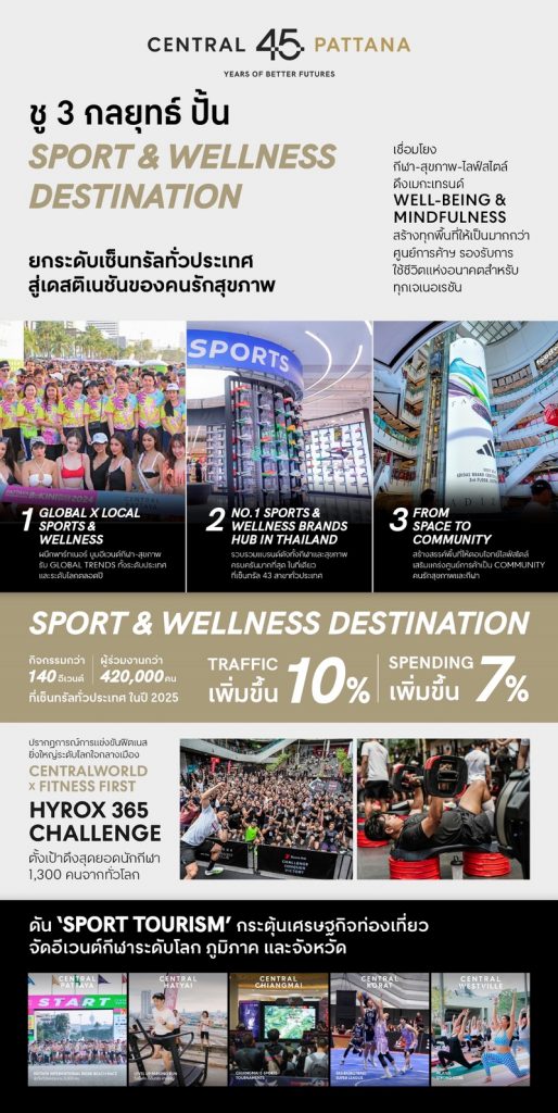 เซ็นทรัลพัฒนา” เดินหน้าปั้นพื้นที่ศูนย์การค้าเซ็นทรัลทั่วประเทศ เป็น Sport & Wellness Destination รับเมกะเทรนด์โลก