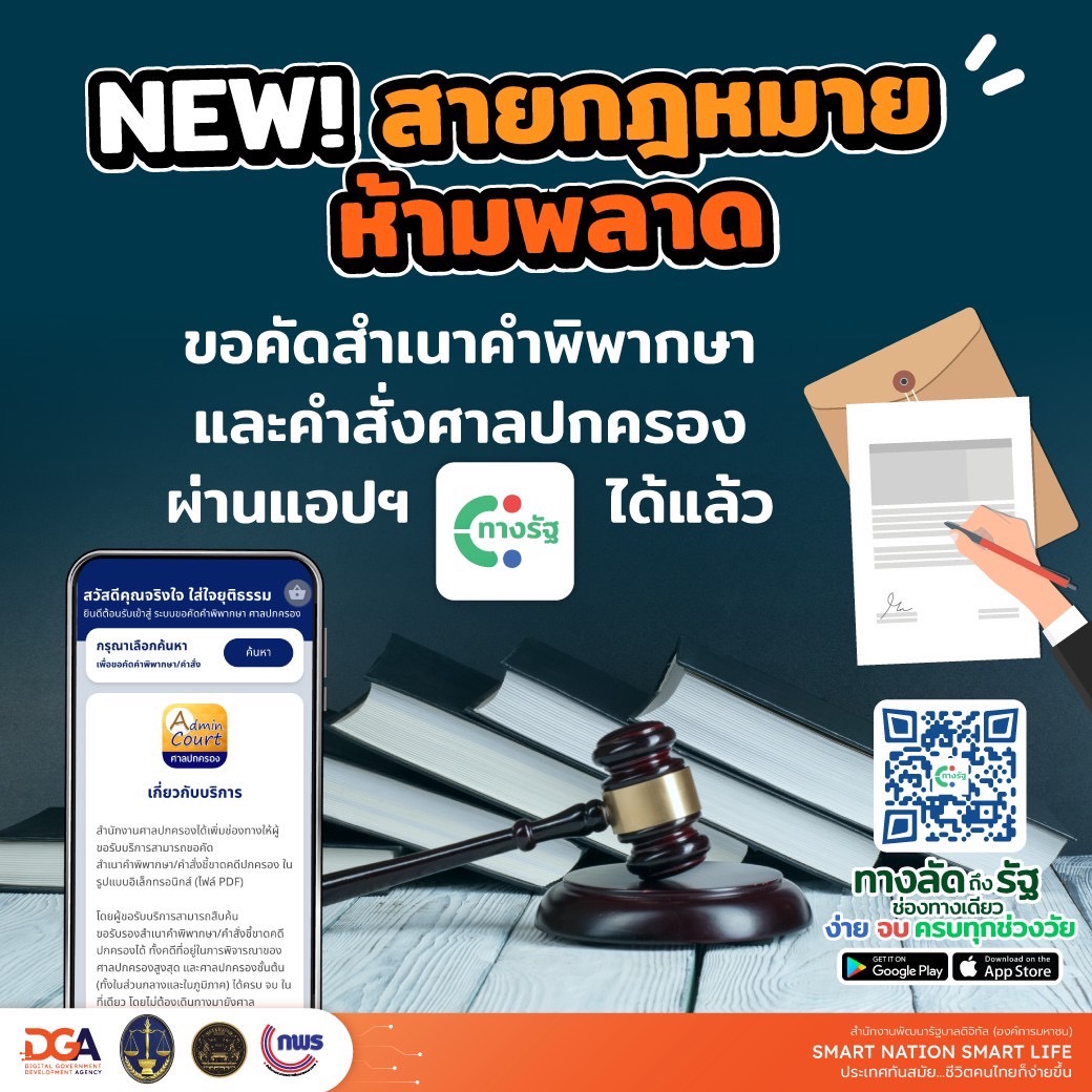 “ครั้งแรก ของไทย ขอคัดคำพิพากษา คำสั่งชี้ขาดคดีปกครอง ผ่านซุปเปอร์แอปฯ ทางรัฐ ได้แล้ววันนี้ ตอกย้ำนโยบายรัฐบาลดิจิทัลของรัฐบาล