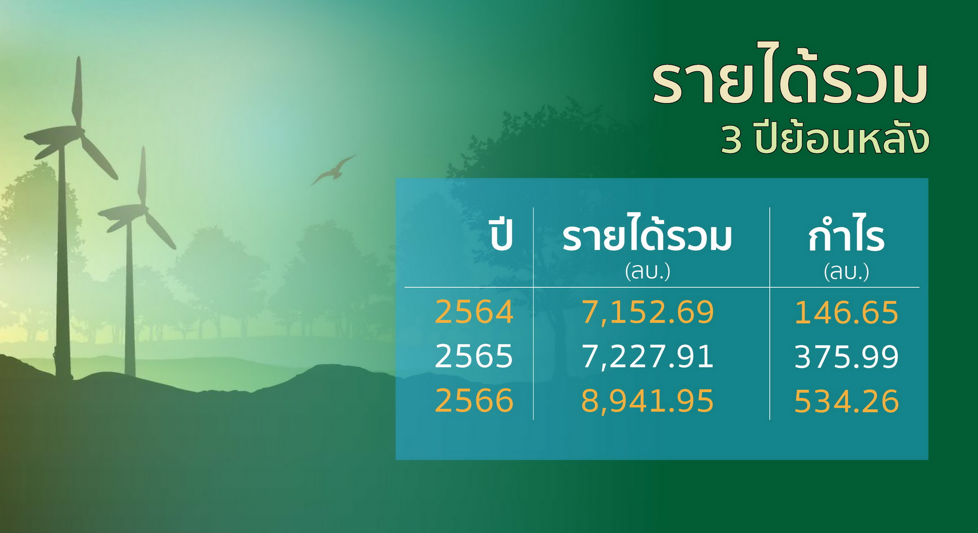 ขณะที่ผลประกอบการด้านกำไรขาดทุนรวมของธุรกิจ ปี 2564 กำไร 146.65 ล้านบาท ปี 2565 กำไร 375.99 ล้านบาท (เพิ่มขึ้น 229.34 ล้านบาท หรือ 156.39%) ปี 2566 กำไร 534.26 ล้านบาท (เพิ่มขึ้น 158.27 ล้านบาท หรือ 42.10%)
