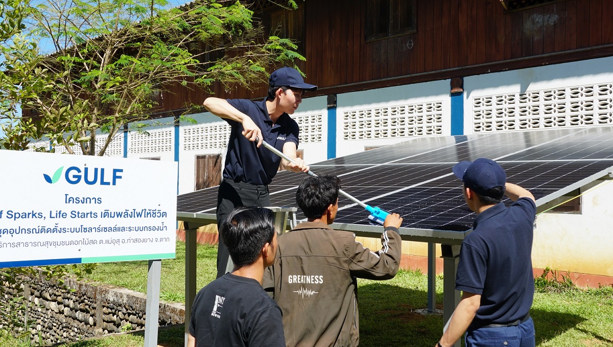 ธีรตีพิศา เตวิชพศุตม์ ประธานเจ้าหน้าที่บริหารด้านปฏิบัติการ บริษัท กัลฟ์ เอ็นเนอร์จี ดีเวลลอปเมนท์ จำกัด (มหาชน) กล่าวว่า “จุดเริ่มต้นของโครงการนี้ เกิดจากการที่ GULF และ GULF1 บริษัทในเครือ นำร่องติดตั้งชุดอุปกรณ์ระบบโซลาร์เซลล์ในพื้นที่ทุรกันดารตั้งแต่ปี 2566 ใน 3 พื้นที่ ได้แก่ บ้านห้วยน้ำไซ อ.นครไทย จ.พิษณุโลก เกาะทุ่งนางดำ อ.คุระบุรี จ.พังงา และบ้านดอกไม้สด อ.ท่าสองยาง จ.ตาก