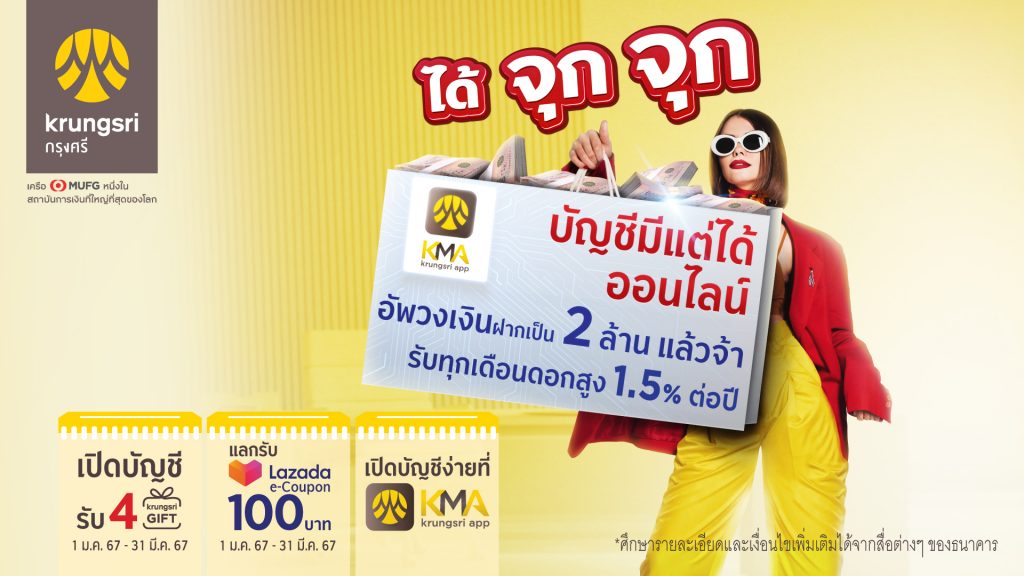 สำหรับ กรุงศรี มีแต่ได้ ออนไลน์ ฝากสูงสุด 2 ล้านบาท รับอัตราดอกเบี้ยสูง 1.5% ต่อปี ลูกค้าสามารถเปิดบัญชีหรือเพิ่มวงเงินเข้ามาบัญชีง่าย ๆ ได้ผ่าน KMA Krungsri app สำหรับลูกค้าที่เปิดบัญชีใหม่ ตั้งแต่วันนี้ ถึง 31 มีนาคม 2567 รับโปรโมชันพิเศษ Krungsri GIFT จำนวน 4 กิฟท์ และแลกรับ Lazada e-Coupon มูลค่า 100 บาท หรือส่วนลดจากร้านค้ามากมาย ใน Krungsri GIFT ดูรายละเอียดเพิ่มเติม ได้ที่ https://bit.ly/meetaedai-online-fb2