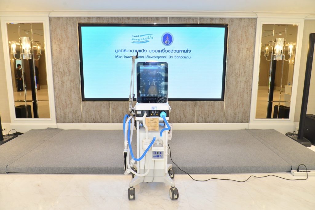 นวลพรรณ ล่ำซำ ประธานกรรมการ มูลนิธิมาดามแป้ง กล่าวว่า “โรงพยาบาลในต่างจังหวัดหลายโรงพยาบาลยังคงต้องการเครื่องมือแพทย์ และสิ่งหนึ่งที่สำคัญในการบริจาคเครื่องมือแพทย์ คือการส่งเครื่องมือแพทย์ไปยังหน่วยงานที่มีความต้องการอย่างแท้จริง และมีคุณหมอผู้เชี่ยวชาญที่สามารถใช้เครื่องมือเหล่านี้ได้จริง หวังว่าเครื่องช่วยหายใจนี้จะนำพาโอกาสในการช่วยชีวิต และเข้าถึงการช่วยเหลือคนในจังหวัดน่านตลอดจนพื้นที่ใกล้เคียงได้”