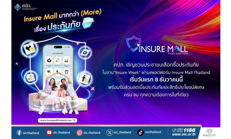 สำนักงานคณะกรรมการกำกับและส่งเสริมการประกอบธุรกิจประกันภัย (สำนักงาน คปภ.) เดินหน้าสานต่อความสำเร็จของโครงการ “Insure Mall Thailand” พร้อมเปิดให้บริการแพลตฟอร์ม Insure Mall Thailand ประจำปี 2025 สำหรับใช้เป็นศูนย์กลางประกันภัยดิจิทัลที่ เพื่อให้ประชาชนสามารถเข้าถึงข้อมูลและผลิตภัณฑ์ประกันภัยได้อย่างสะดวก รวดเร็ว และสอดคล้องกับความต้องการของประชาชนในยุคดิจิทัล ทั้งนี้โครงการดังกล่าวได้แสดงให้เห็นถึงศักยภาพของระบบประกันภัยไทย ในการปรับตัวและยกระดับ สู่การให้บริการบนแพลตฟอร์มออนไลน์อย่างเป็นรูปธรรม