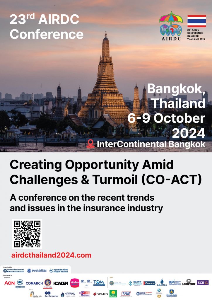 ล่าสุดเตรียมอัปเดตความรู้และทิศทางอุตสาหกรรมประกันภัยในงานประชุมระดับนานาชาติ Association of Insurers and Reinsurers of Developing Countries: AIRDC ครั้งที่ 23 ภายใต้ธีม “Creating Opportunity Amid Challenges & Turmoil (CO-ACT)” สร้างโอกาสท่ามกลางความท้าทายในสถานการณ์โลกปัจจุบัน