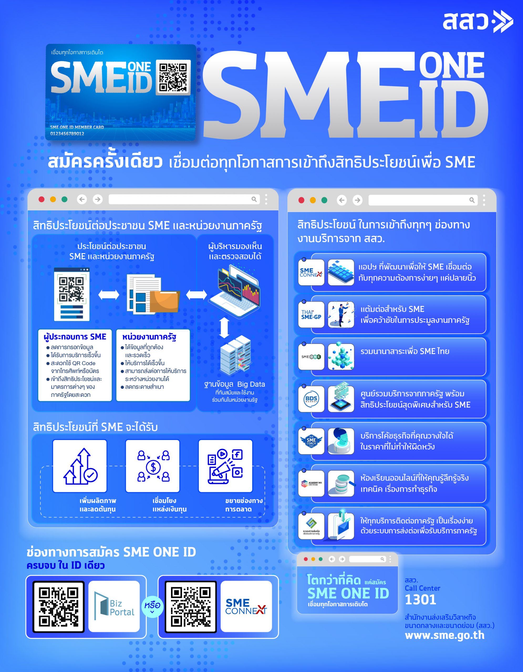 “เป็นสาเหตุหนึ่งที่ทำให้เกิด SME One ID ขึ้นมา ซึ่งเป็นบริการออกเลขประจำตัวทางธุรกิจ (ID) สำหรับผู้ประกอบการ เพื่อประโยชน์ในการพัฒนากระบวนการทางธุรกิจให้เร็วขึ้น ลดขั้นตอน และเอกสารต่างๆ”