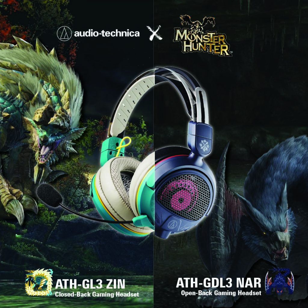 Audio-Technica ATH-GL3 ZIN หูฟังครอบหูที่ได้รับแรงบันดาลใจในการออกแบบมาจาก Zinogre ซึ่งเป็นหนึ่งในมอนสเตอร์ยอดฮิตจากเกม Monster Hunter มีจุดเด่นอยู่ที่น้ำหนักเบาเพียง 230 กรัม ทำให้สามารถใส่เล่นเกมได้อย่างสบายตลอดทั้งวันโดยไม่เจ็บหู ด้วยดีไซน์แบบ Closed-back ที่ช่วยตัดเสียงรบกวนภายนอกและยังช่วยให้แยกทิศทางของเสียงได้อย่างชัดเจน