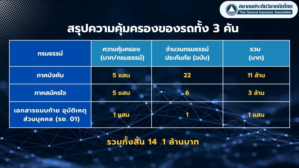 “สมาคมประกันวินาศภัยไทย สกัดเคลมจัดฉากฉ้อฉลประกันภัย หวังเคลมเงินประกันกว่า 14 ล้าน พบพิรุธทำประกันภัยซ้ำซ้อน 28 ฉบับ