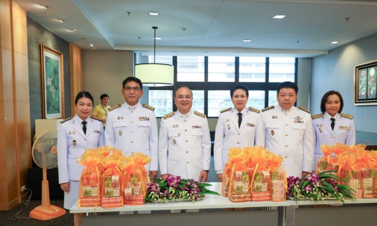 ชูฉัตร ประมูลผล เลขาธิการคณะกรรมการกำกับและส่งเสริมการประกอบธุรกิจประกันภัย (เลขาธิการ คปภ.) คณะผู้บริหาร พนักงาน และลูกจ้างสำนักงานคณะกรรมการกำกับและส่งเสริมการประกอบธุรกิจประกันภัย (สำนักงาน คปภ.) จัดกิจกรรมเฉลิมพระเกียรติพระบาทสมเด็จพระเจ้าอยู่หัว พร้อมทำบุญตักบาตรพระสงฆ์ จำนวน 10 รูป