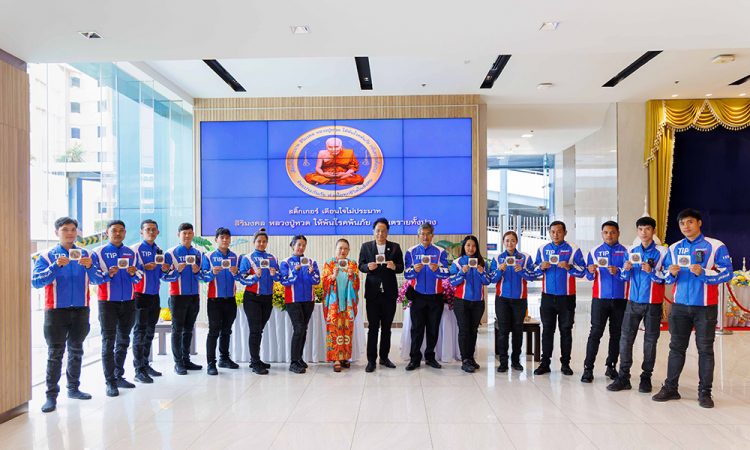 วิชชุดา ไตรธรรม ที่ปรึกษากรรมการผู้จัดการใหญ่ บริษัท ทิพยประกันภัย จำกัด (มหาชน) ส่งมอบสติ๊กเกอร์สูญญากาศสิริมงคล “หลวงปู่ทวด เตือนใจไม่ประมาท” เพื่อเป็นเครื่องเตือนใจให้ใช้ชีวิตด้วยสติและความไม่ประมาท ป้องกันภัยอันตราย และเสริมสิริมงคลแก่ผู้ใช้รถใช้ถนน ให้กับคุณโกสนธ์ พิศภา ผู้ช่วยกรรมการผู้จัดการใหญ่ สายงานสินไหมทดแทน พร้อมทีม TIP Smart Assist นำไปแจกจ่ายแก่ประชาชนที่เดินทางกลับต่างจังหวัดในช่วงวันหยุดยาว