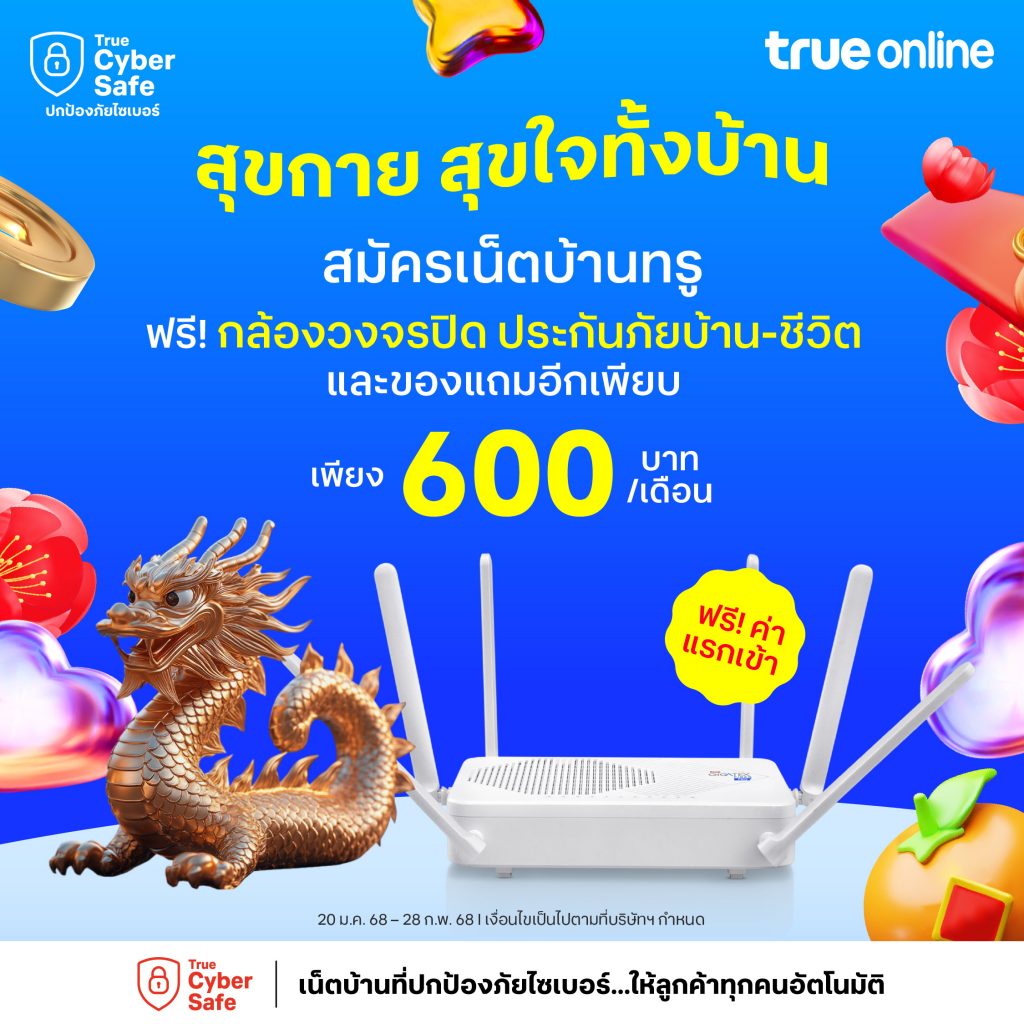 • สมัครเน็ตบ้านทรู สุขกายสุขใจทั้งบ้าน รับฟรี! กล้องวงจรปิด ประกันภัยบ้าน-ชีวิต ซิมเน็ตมือถือ กล่องทรูไอดี ทีวี พร้อมชมความบันเทิงระดับโลกจากทรูวิชั่นส์นาว เน็ตบ้านแรง 500/500 Mbps เพียง 600 บาท/เดือน ลูกค้าซิมทรู ดีแทครับส่วนลดรายเดือนสูงสุด 300บาท/เดือน ตั้งแต่ 20 ม.ค. 68 – 28 ก.พ. 68