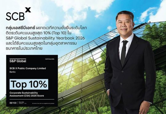 NEWSSCBX ติด Top 10 S&P Sustainability Yearbook 2026Reporter21/02/2026NEWS"กลุ่มเอสซีบีเอกซ์ ผงาดเวทีความยั่งยืนระดับโลก ติดระดับคะแนนสูงสุด 10% (Top 10) ใน S&P Global Sustainability Yearbook 2026 และได้รับคะแนนสูงสุดในกลุ่มอุตสาหกรรมธนาคารในประเทศไทย บริษัท...