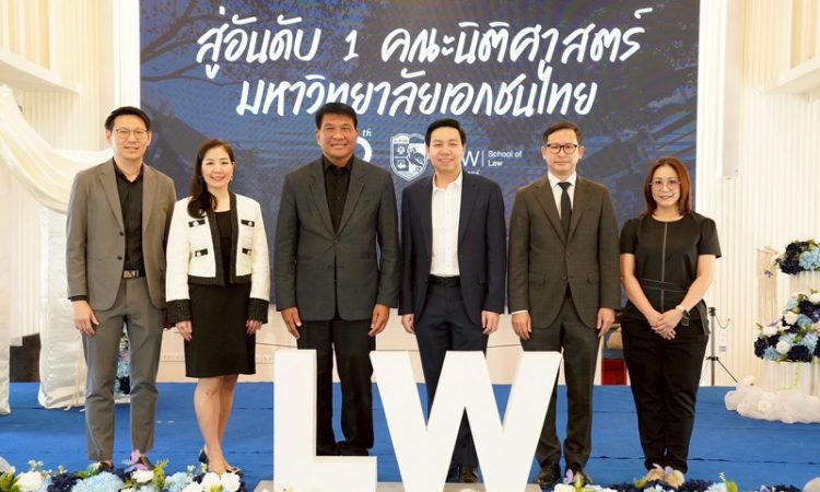 คณะนิติศาสตร์ มหาวิทยาลัยหอการค้าไทย จัดงานแถลงข่าว “30 ปี คณะนิติศาสตร์ มหาวิทยาลัยหอการค้าไทย” เนื่องในโอกาสครบรอบ 30 ปีแห่งการสถาปนา พร้อมประกาศวิสัยทัศน์มุ่งสู่การเป็นคณะนิติศาสตร์อันดับ 1 คณะนิติศาสตร์ของมหาวิทยาลัยเอกชนในประเทศไทย โดยมี รองศาสตราจารย์ ดร.ธนวรรธน์ พลวิชัย (ที่ 3 จากซ้าย) อธิการบดีมหาวิทยาลัยหอการค้าไทย เปิดงาน พร้อมด้วย ผู้ช่วยศาสตราจารย์ ดร.ประพันธ์พงษ์ ขำอ่อน (ที่ 3 จากขวา) คณบดีคณะนิติศาสตร์ รองศาสตราจารย์ ดร.มุนินทร์ พงศาปาน (ที่ 2 จากขวา) อดีตคณบดีคณะนิติศาสตร์ มหาวิทยาลัยธรรมศาสตร์ พร้อมด้วย ผู้ทรงคุณวุฒิด้านกฎหมาย ร่วมกิจกรรม ปาฐกถาพิเศษ และเสวนาวิชาการ ณ ห้องไทรทอง ม.หอการค้าไทย ถ.วิภาวดีรังสิต เมื่อเร็ว ๆ นี้