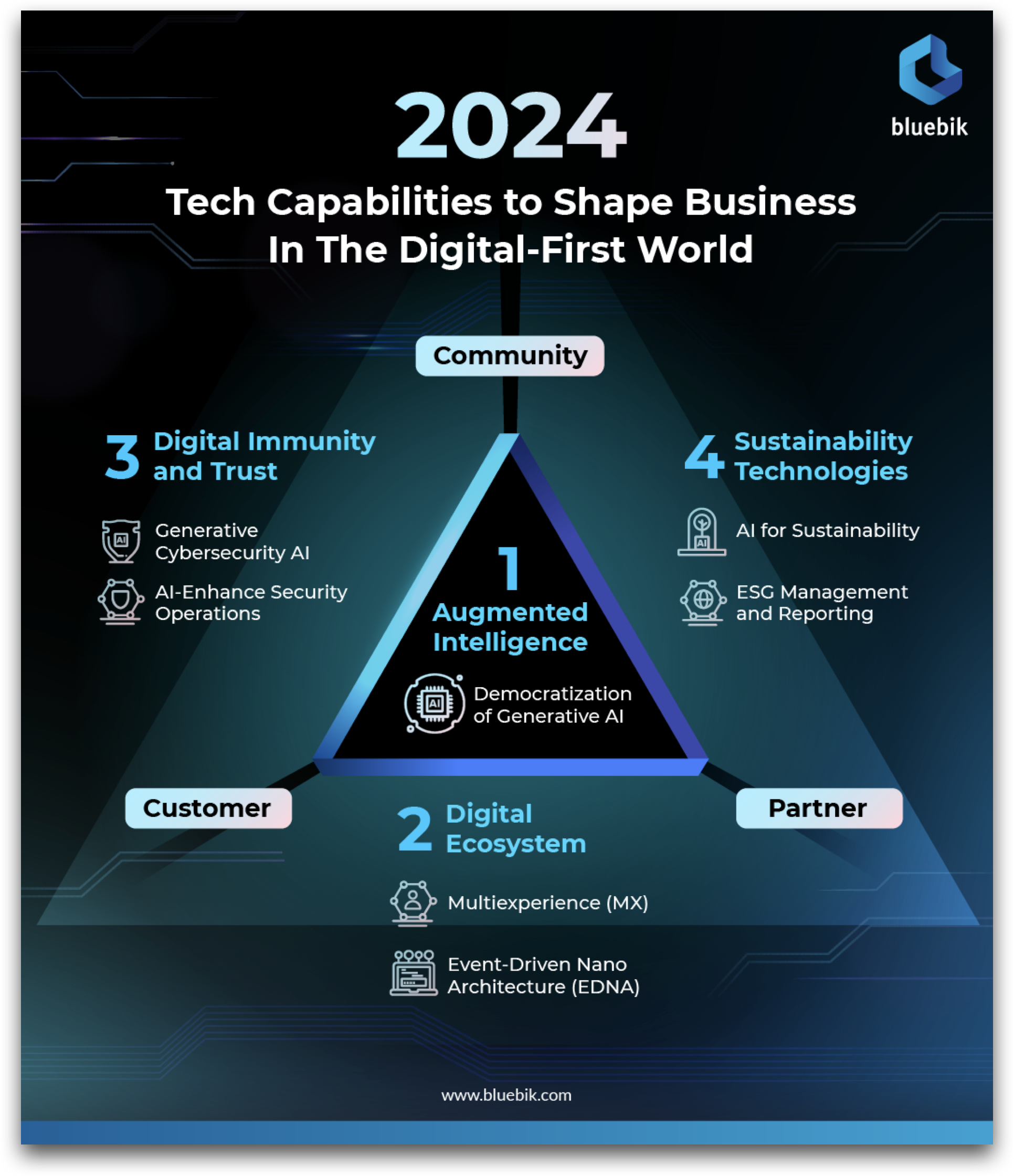 บริษัท บลูบิค กรุ๊ป จำกัด (มหาชน) ผู้ให้บริการด้านดิจิทัลทรานส์ฟอร์เมชันครบวงจร คาดการณ์ 7 เทรนด์ Tech Capabilities หรือ ขีดความสามารถด้านเทคโนโลยีสำหรับองค์กรทั่วโลกที่ต้องเริ่มประยุกต์ใช้ ปี 2567 เพื่อเตรียมความพร้อมรับมือปัจจัยลบและความเปลี่ยนแปลงในอนาคต
