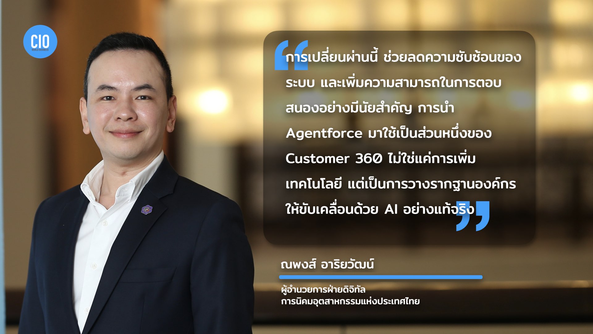 “ในมุมของเทคโนโลยี การเปลี่ยนผ่านนี้ยังช่วยลดความซับซ้อนของระบบ และเพิ่มความสามารถในการตอบสนองอย่างมีนัยสำคัญ การนำ Agentforce มาใช้เป็นส่วนหนึ่งของ Customer 360 ไม่ใช่แค่การเพิ่มเทคโนโลยี แต่เป็นการวางรากฐานองค์กรให้ขับเคลื่อนด้วย AI อย่างแท้จริง”