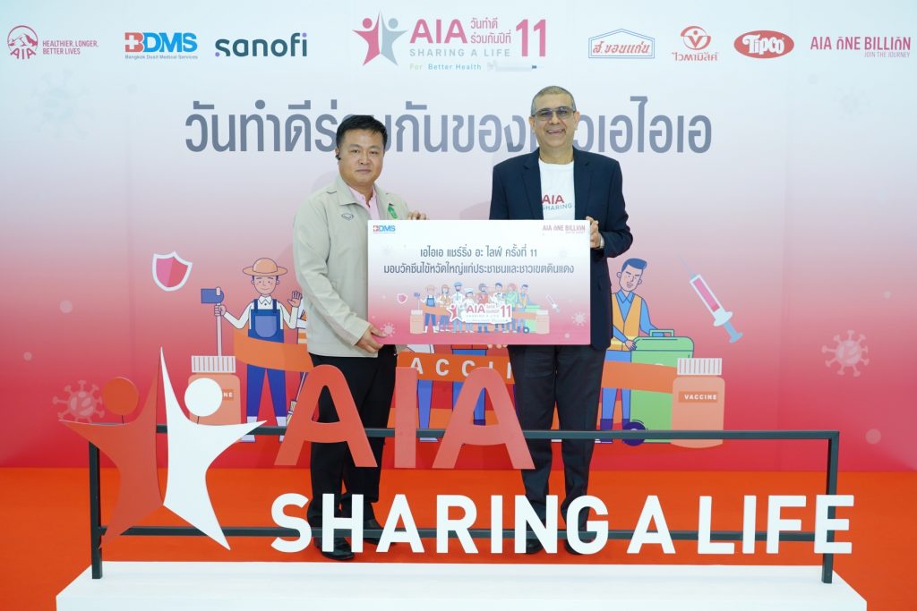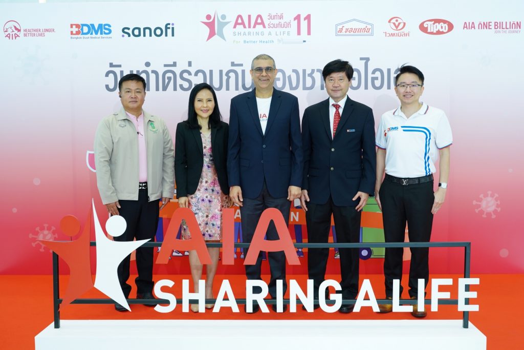 ในพิธีเปิดโครงการ “เอไอเอ แชร์ริ่ง อะ ไลฟ์” (AIA Sharing A Life) ครั้งที่ 11 ได้รับเกียรติจากคณะแพทย์ผู้บริหาร BDMS นำโดย นายแพทย์โชคชัย จารุศิริพิพัฒน์ ประธานฝ่ายแพทย์ BDMS และนายแพทย์มนต์สรร อัศวนพเกียรติ ผู้อำนวยการฝ่ายผลิตภัณฑ์และโครงสร้างราคา BDMS พร้อมด้วย มัณฑนา ตันประเสริฐ ผู้อำนวยการ กลุ่มธุรกิจวัคซีน ซาโนฟี่ประเทศไทยและเมียนมาร์