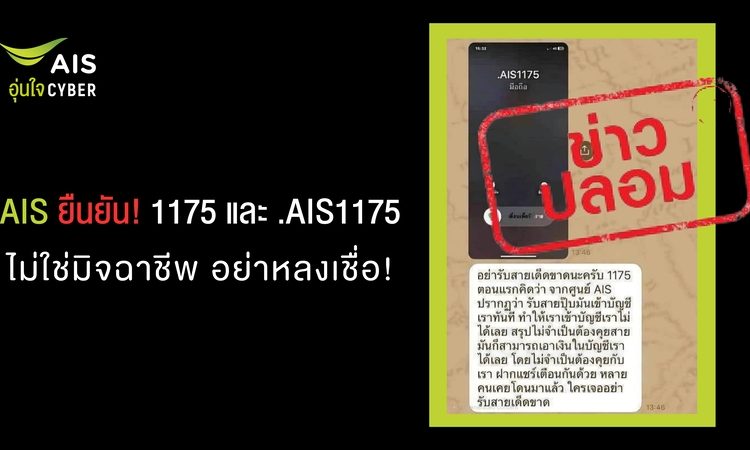 AIS ยืนยัน 1175 และ .AIS1175 ไม่ใช่มิจฉาชีพ