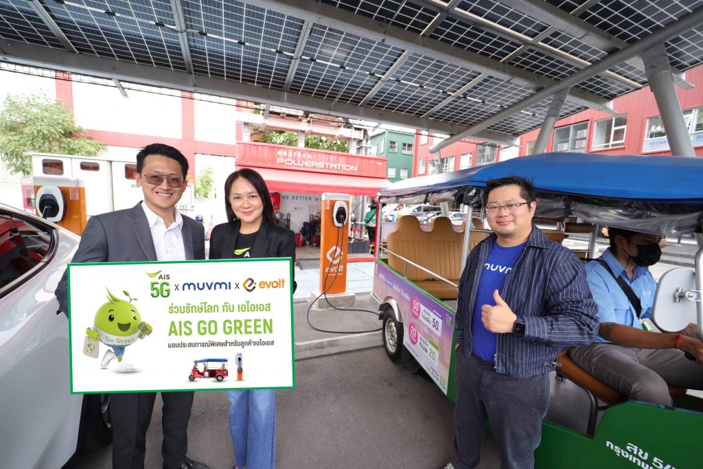 Evolt ผู้ให้บริการสถานีชาร์จรถยนต์ไฟฟ้าแบบครบวงจรที่มีอยู่กว่า 200 แห่ง ทั่วทุกภูมิภาคของประเทศ และ MuvMi ผู้ให้บริการรถตุ๊กตุ๊กไฟฟ้าปลอดมลพิษ ในระบบ Ride Sharing ที่ให้บริการครอบคลุมพื้นที่ 12 แห่งทั่วกรุงเทพฯ กับการมอบสิทธิพิเศษภายใต้แนวคิด AIS Go Green ที่ให้ลูกค้า AIS และ AIS Serenade ทั้งลูกค้ามือถือและไฟเบอร์ มอบเครดิตโบนัสให้ลูกค้าสูงสุด 200 บาท เมื่อเติมเงินผ่านแอปพลิเคชัน Evolt และรับส่วนลดสุดพิเศษเมื่อใช้คะแนนสะสม AIS Points กับบริการ MuvMi