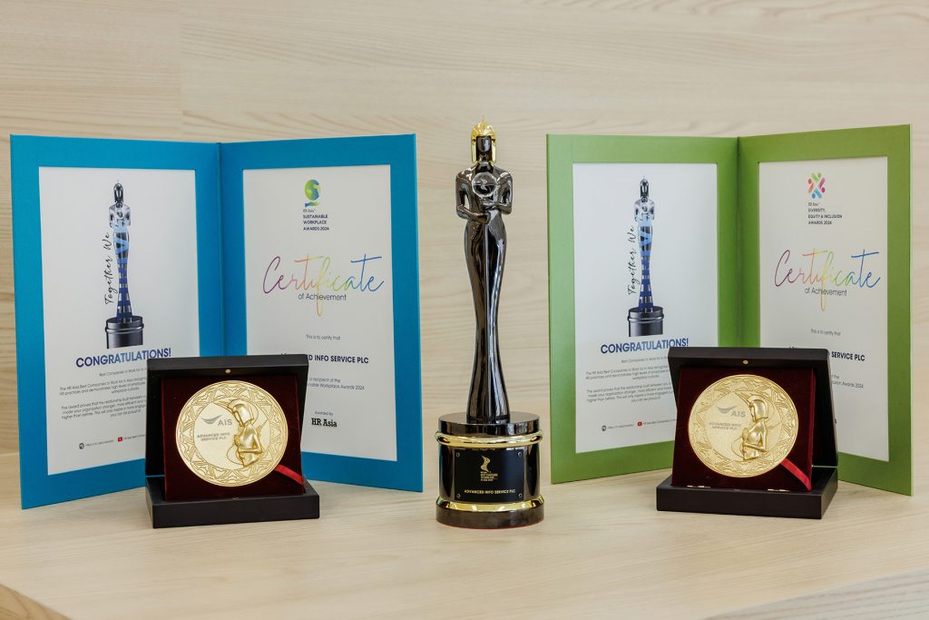 1. รางวัล Best Companies to Work for in Asia_2024 นับเป็นปีที่ 6 ติดต่อกันที่เอไอเอสได้รับการยกย่องให้เป็นองค์กรที่น่าร่วมงานที่สุดในเอเชีย และเป็นองค์กรเดียวในอุตสาหกรรมโทรคมนาคมของไทยที่ได้รับรางวัลนี้อย่างต่อเนื่อง สะท้อนถึงศักยภาพด้านการบริหารทรัพยากรบุคคลของ AIS ที่มุ่งเน้นการดูแลพนักงานในทุกมิติ