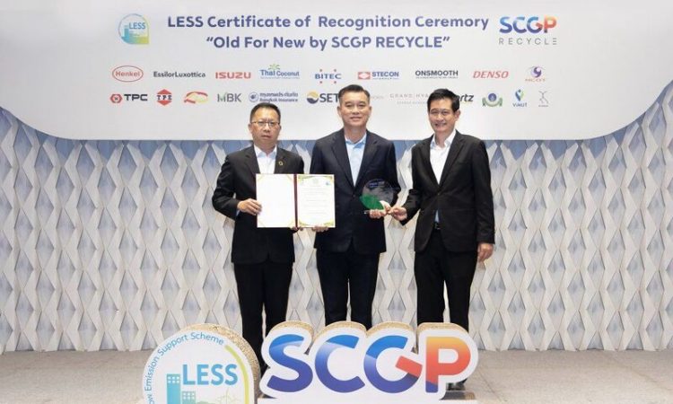บริษัท กรุงเทพประกันภัย จำกัด (มหาชน) โดย พิสิฐ คิดเจริญสุข (กลาง) รองผู้อำนวยการอาวุโส ฝ่ายสินไหมทดแทนยานยนต์ เป็นผู้แทนบริษัทฯ รับมอบโล่พร้อมใบประกาศเกียรติคุณ โครงการสนับสนุนกิจกรรมลดก๊าซเรือนกระจก (Low Emission Support Scheme: LESS) ภายใต้โครงการ “Old For New โดย SCGP RECYCLE” ในพิธีมอบใบประกาศเกียรติคุณภายใต้โครงการสนับสนุนกิจกรรมลดก๊าซเรือนกระจก ซึ่งได้รับเกียรติจาก ณกรณ์ ตรรกวิรพัท (ซ้าย) ผู้อำนวยการองค์การบริหารจัดการก๊าซเรือนกระจก (องค์การมหาชน) และ ดนัยเดช เกตุสุวรรณ (ขวา) ประธานเจ้าหน้าที่บริหารสายการเงิน บริษัท เอสซีจี แพคเกจจิ้ง จำกัด (มหาชน) เป็นผู้มอบ ณ อาคารอเนกประสงค์ สำนักงานใหญ่ SCG บางซื่อ กรุงเทพฯ เมื่อวันที่ 25 กุมภาพันธ์ 2569