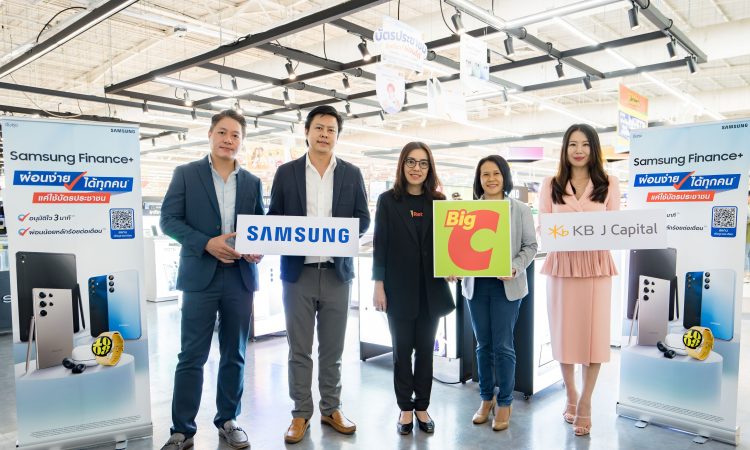 และ ศิวาวุธ อินฟ้าแสง Samsung Finance+ Team Lead จากไทยซัมซุง อิเลคโทรนิคส์ และ นูริ คิม ประธานเจ้าหน้าที่ฝ่ายกลยุทธ์ จากเคบี เจ แคปปิตอล ร่วมเปิดตัวบริการ “ซัมซุงไฟแนนซ์พลัส” ที่ ห้างบิ๊กซี ซูเปอร์เซ็นเตอร์ เพื่อตอบสนองความต้องการของลูกค้าที่อยากเป็นเจ้าของ สมาร์ทโฟนและแท็บเล็ต