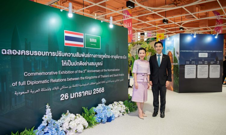 อัศวิน – ฐาปณี เตชะเจริญวิกุล ประธานเจ้าหน้าที่บริหารและกรรมการผู้จัดการใหญ่ และกรรมการรองผู้จัดการใหญ่อาวุโส กลุ่มบริษัทบีเจซี บิ๊กซี จัดพิธีเปิดนิทรรศการ “ฉลองครบรอบการปรับความสัมพันธ์ทางการทูตให้เป็นปกติสมบูรณ์” เพื่อเฉลิมฉลองครบรอบ 3 ปีแห่งการฟื้นฟูความสัมพันธ์ทางการทูตระหว่างราชอาณาจักรไทย และราชอาณาจักรซาอุดีอาระเบีย