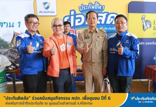 Movementประกันติดล้อ ร่วมสนับสนุนกิจกรรม คปภ. เพื่อชุมชน ปีที่ 6 ณ ชุมชนบ้านซำตารมย์ จ. ศรีสะเกษCWB04/07/2023Movementประกันติดล้อ บริหารโดย บริษัท เงินติดล้อ จำกัด (มหาชน) หรือ TIDLOR โดย ธนกร นพกิจกำจร (ที่ 1 จากซ้าย) ผู้จัดการอาวุโสแผนกสื่อสารองค์กร เป็นตัวแทนทีมงานร่วมสนับสนุนกิจกรรมในโครงการ “คปภ....