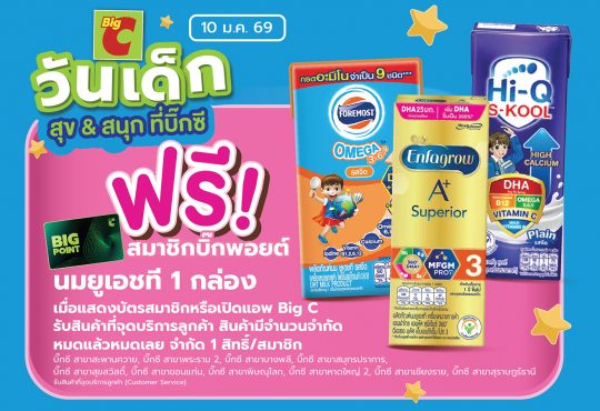 Movementบิ๊กซี ฉลองวันเด็กแห่งชาติ 2569 ชวนครอบครัวมาร่วมสร้างรอยยิ้ม พร้อมรับนม UHT ฟรี ที่บิ๊กซี 10 สาขา ที่ร่วมรายการCWB08/01/2026Movementบิ๊กซี ซูเปอร์เซ็นเตอร์ ร่วมเฉลิมฉลองวันเด็กแห่งชาติ ปี 2569 ด้วยการจัดกิจกรรม “บิ๊กซี...