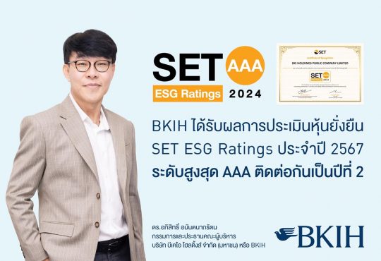MovementBKIH ได้รับผลการประเมินหุ้นยั่งยืน SET ESG Ratings ประจำปี 2567 ระดับสูงสุด AAA ติดต่อกันเป็นปีที่ 2CWB19/12/202419/12/2024Movementดร.อภิสิทธิ์ อนันตนาถรัตน กรรมการและประธานคณะผู้บริหาร บริษัท บีเคไอ โฮลดิ้งส์ จำกัด...