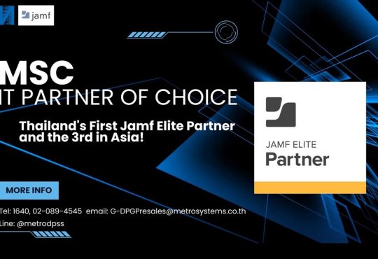 MovementMSC ก้าวขึ้นเป็น Jamf Elite Partner รายแรกในประเทศไทย และเป็นรายที่ 3 ในเอเชียCWB17/12/2024Movementเรามีความยินดีอย่างยิ่งที่จะประกาศว่า บริษัท เมโทรซิสเต็มส์คอร์ปอเรชั่น จำกัด (มหาชน) หรือ MSC...