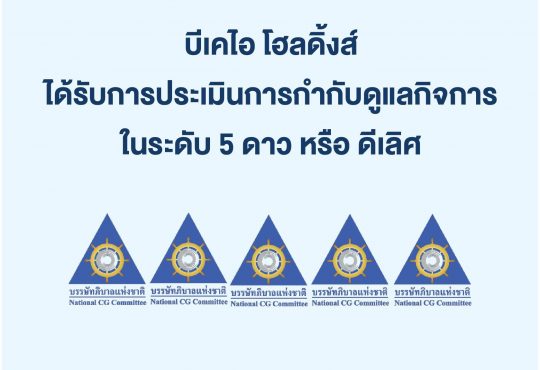Movementบีเคไอ โฮลดิ้งส์ ได้รับคะแนนการประเมินการกำกับดูแลกิจการบริษัทจดทะเบียนไทยในระดับ 5 ดาวCWB08/11/202408/11/2024Movementบริษัท บีเคไอ โฮลดิ้งส์ จำกัด (มหาชน) หรือ BKIH...