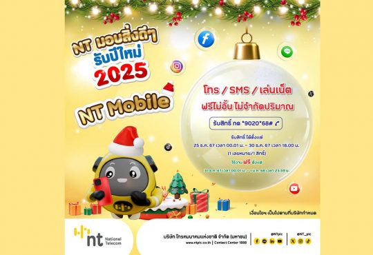 NEWSNT มอบสิ่งดีๆ รับปีใหม่ 2025 เปิดโทรฟรีทั่วไทย ทั่วโลกCWB27/12/2024NEWS"NT เปิดให้บริการโทรฟรีเบอร์บ้านทั่วไทย ทั่วโลก ช่วงปีใหม่พร้อมส่วนลดพิเศษสำหรับลูกค้าใหม่ NT Broadband ตอบสนองนโยบายกระทรวงดิจิทัลเพื่อเศรษฐกิจและสังคม...