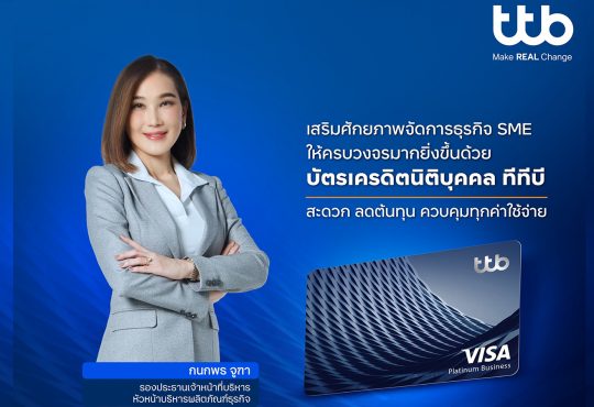NEWSทีทีบี เสริมศักยภาพธุรกิจ SME ด้วย บัตรเครดิตนิติบุคคล ทีทีบีCWB17/09/2024NEWS"ทีทีบี เสริมศักยภาพธุรกิจ SME ด้วย บัตรเครดิตนิติบุคคล ทีทีบี (ttb...