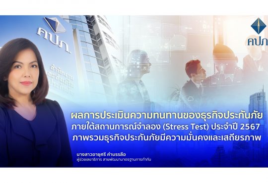 NEWSผลการประเมินความทนทานของธุรกิจประกันภัยภายใต้สถานการณ์จำลอง (Stress Test) ประจำปี 2567 ภาพรวมธุรกิจประกันภัยมีความมั่นคงและเสถียรภาพCWB13/09/2024NEWS"สำนักงาน คปภ. ได้กำหนดสถานการณ์ความเสี่ยงจำลอง ปัจจัยและค่าพารามิเตอร์ที่ใช้ในการทดสอบ และให้บริษัทประกันภัยจัดทำและนำส่งผลการทดสอบให้สำนักงาน คปภ. เป็นประจำทุกปี...