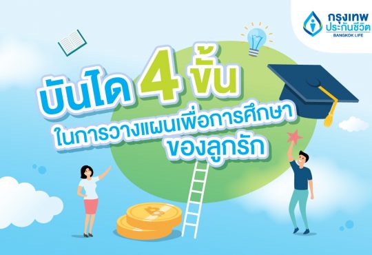 NEWSกรุงเทพประกันชีวิตแชร์ บันได 4 ขั้นในการวางแผนเพื่อการศึกษาของลูกรักCWB23/03/202423/03/2024NEWS"การศึกษาของลูกเป็นเป้าหมายสำคัญของครอบครัว การวางแผนการศึกษาให้ลูกเปรียบเหมือนบันไดที่จะนำลูกก้าวสู่อนาคตตามเป้าหมายที่ตั้งใจไว้ การศึกษาของลูกเป็นเป้าหมายสำคัญของครอบครัว พ่อแม่ควรจะวางแผนเตรียมแนวทางและความพร้อมไว้ให้ลูกแต่เนิ่นๆ การวางแผนการศึกษาให้ลูกเปรียบเหมือนบันไดที่จะนำลูกก้าวสู่อนาคตตามเป้าหมายที่ตั้งใจไว้ บันได 4...