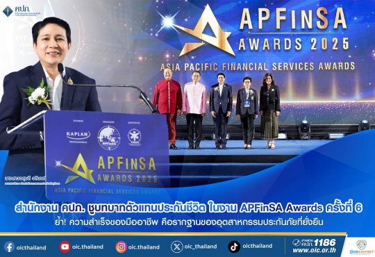 NEWSคปภ. ดันไทยสู่ฮับ InsurTech 2025Reporter31/10/2025NEWS"คปภ. ตอกย้ำความสำเร็จ InsurTech Summit 2025 ชูศักยภาพไทยสู่ศูนย์กลางนวัตกรรมประกันภัยแห่งภูมิภาค สำนักงานคณะกรรมการกำกับและส่งเสริมการประกอบธุรกิจประกันภัย...