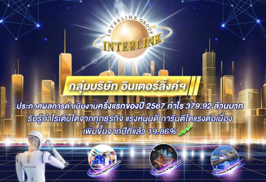 NEWSกลุ่มบริษัท อินเตอร์ลิ้งค์ฯ ประกาศผลการดำเนินงานครึ่งแรกของปี 2567 กำไร 379.92 ล้านบาทCWB15/08/202418/08/2024NEWS"กลุ่มบริษัท อินเตอร์ลิ้งค์ฯ ประกาศผลการดำเนินงานครึ่งแรกของปี 2567 กำไร 379.92 ล้านบาท...