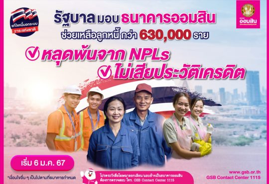 NEWSรัฐอุ้มแก้หนี้รายย่อย สั่งออมสินช่วยเหลือลูกหนี้สินเชื่อโควิดอาชีพอิสระCWB09/01/2024NEWS"รัฐอุ้มแก้หนี้รายย่อย สั่งออมสินช่วยเหลือลูกหนี้สินเชื่อโควิดอาชีพอิสระ กว่า 630,000 ราย หลุดพ้นสถานะ NPLs...