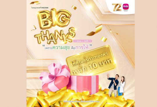 NEWSเมืองไทยประกันชีวิตมอบความสุขส่งท้ายปี กับโค้งสุดท้ายของแคมเปญ MTL Big ThanksCWB27/12/202327/12/2023NEWS"เมืองไทยประกันชีวิตมอบความสุขส่งท้ายปี กับโค้งสุดท้ายของแคมเปญ MTL Big Thanks ลุ้นรับรางวัลใหญ่ทองคำแท่งหนัก 10...