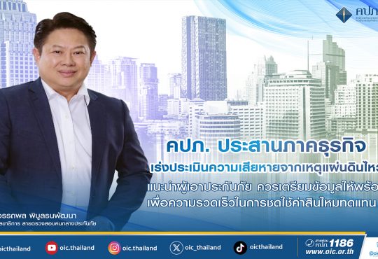 NEWSเลขาธิการ คปภ. ลงพื้นที่ติดตามการจ่ายค่าสินไหมทดแทนในพื้นที่สงขลาCWB07/12/2025NEWS"เลขาธิการ คปภ. ลงพื้นที่ติดตามการจ่ายค่าสินไหมทดแทนในพื้นที่สงขลา ประชุมร่วมกับบริษัทประกันภัย พร้อมเร่งช่วยเหลือผู้เอาประกันภัยให้ได้รับการเยียวยาโดยเร็ว สำนักงานคณะกรรมการกำกับและส่งเสริมการประกอบธุรกิจประกันภัย (สำนักงาน...