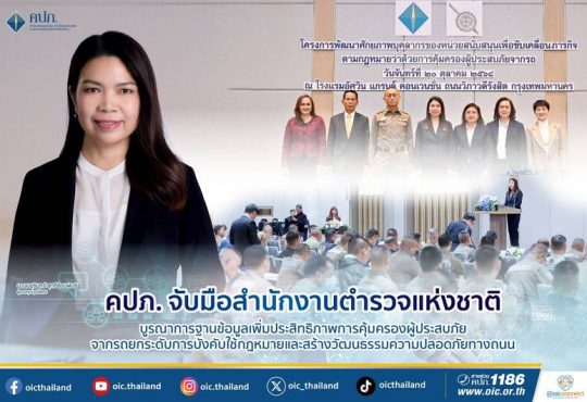 "คปภ. จับมือสำนักงานตำรวจแห่งชาติ บูรณาการฐานข้อมูลเพิ่มประสิทธิภาพการคุ้มครองผู้ประสบภัยจากรถยกระดับการบังคับใช้กฎหมายและสร้างวัฒนธรรมความปลอดภัยทางถนน สำนักงานคณะกรรมการกำกับและส่งเสริมการประกอบธุรกิจประกันภัย (สำนักงาน คปภ.) โดยฝ่ายสำนักนายทะเบียนคุ้มครองผู้ประสบภัยจากรถ...