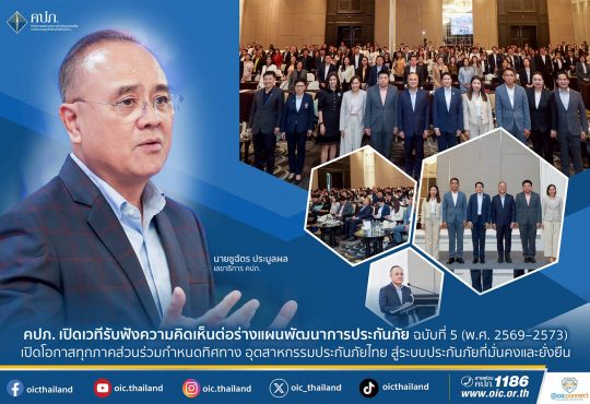 NEWSคปภ. เปิดเวทีรับฟังความคิดเห็นต่อร่างแผนพัฒนาการประกันภัย ฉบับที่ 5 (พ.ศ. 2569–2573)CWB14/10/202514/10/2025NEWS"คปภ. เปิดเวทีรับฟังความคิดเห็นต่อร่างแผนพัฒนาการประกันภัย ฉบับที่ 5 (พ.ศ. 2569–2573) เปิดโอกาสทุกภาคส่วนร่วมกำหนดทิศทางอุตสาหกรรมประกันภัยไทย...