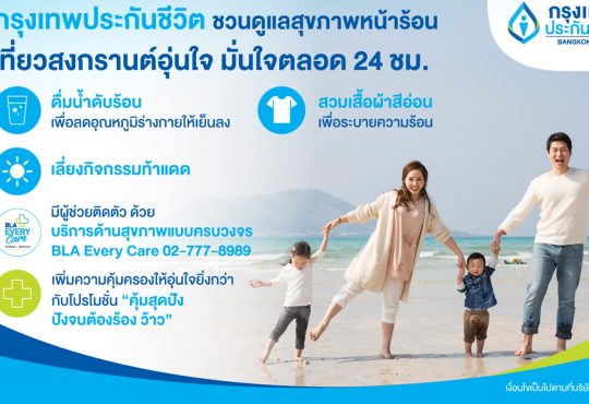 NEWSกรุงเทพประกันชีวิต ชวนดูแลสุขภาพหน้าร้อน พร้อมเที่ยวสงกรานต์อุ่นใจ มั่นใจตลอด 24 ชั่วโมงCWB11/04/2023NEWSฤดูร้อนได้เข้ามาทักทายอย่างเต็มตัว ด้วยอุณหภูมิที่กรมอุตุนิยมวิทยาคาดการณ์ว่าจะแตะถึง 43 องศาในเดือนเมษายนนี้ ในขณะเดียวกันก็เป็นช่วงเวลาที่หลายคนได้วางแผนเดินทางท่องเที่ยว หรือกลับภูมิลำเนาในช่วงเทศกาลสงกรานต์ที่กำลังจะมาถึง โอกาสนี้กรุงเทพประกันชีวิตจึงมีข้อแนะนำดี...