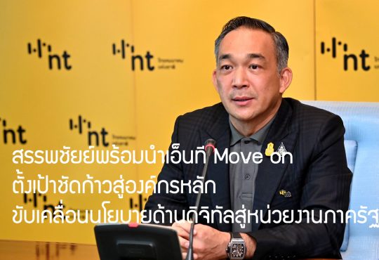NEWSสรรพชัยย์พร้อมนำเอ็นที Move on ตั้งเป้าชัดก้าวสู่องค์กรหลักขับเคลื่อนนโยบายด้านดิจิทัลสู่หน่วยงานภาครัฐCWB10/08/2022NEWSเอ็นทีเปิดตัวกรรมการผู้จัดการใหญ่คนแรกหลังควบรวมกว่าปีครึ่ง เตรียมปรับทัพระยะเปลี่ยนผ่านภายในสิงหาคมนี้ พร้อมปักหมุดเป็นองค์กรหลักหนุนหน่วยงานรัฐขับเคลื่อนภารกิจด้านดิจิทัลครบวงจร พันเอก สรรพชัยย์ หุวะนันทน์ กรรมการผู้จัดการใหญ่...